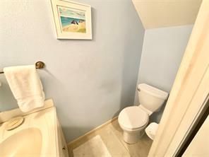 Guest Powder room is conveniently located in the hallway near washer and dryer