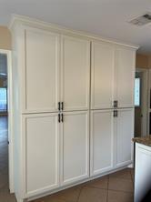 Spacious laundry room with GE washer and dryer with pedestal and tons of storage space.