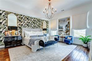 Wake up in the primary suite with Galleria views and tree tops of Southampton. Oversized room with motorized shades, decorative drapes, ceiling fan and spa like bath attached.