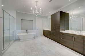 Primary suite offer marble flooring and Eggersman cabinetry, built-in linen.
