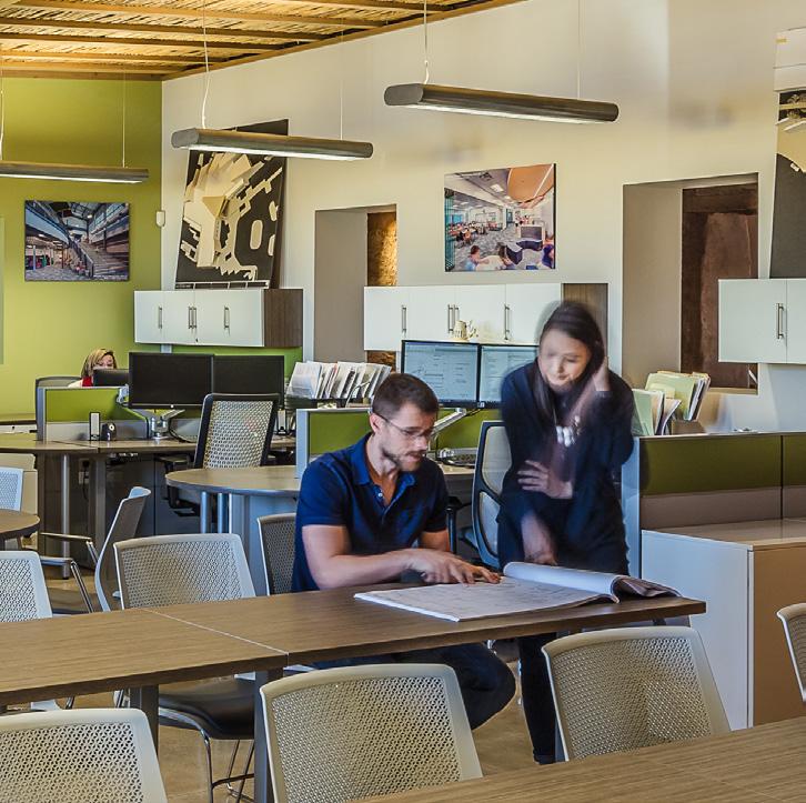 After 14 years, the BWS building underwent a second, less extensive renovation. Concrete floors were ground and polished, lighting was updated, technology was upgraded, interiors were repainted with bright, cheerful colors, and all furniture was replaced with new ergonomic workstations and flexible, highly configurable tables and chairs. All employees have “sitstand” desks, seating with a wide array of adjustment possibilities, and dual computer screens.