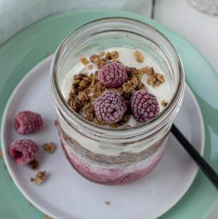7. Am nächsten Tag kann man noch ein wenig Granola drüberstreuen und das Frühstück genießen oder einfach mitnehmen.