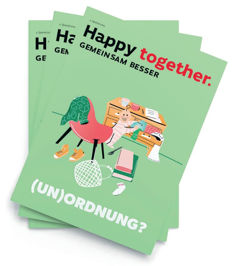IMPRESSUM: Medieninhaber und Herausgeber: BWS Gemeinnützige allgemeine Bau-, Wohn- und Siedlungsgenossenschaft, registrierte Gen.m.b.H. · Triester Straße 40/3/1 1100 Wien +43 1 54608-0 office@bwsg.at www.bwsg.at · ATU55612206 FN 94623 b Handelsgericht Wien | WBG Wohnen und Bauen Ges.m.b.H. Wien · Triester Straße 40/3/1 · 1100 Wien · +43 1 54608-0 · office@bwsg.at · www.bwsg.at · ATU55628100 · FN 127784 v · Handelsgericht Wien | BWSt Gemeinnützige Wohn- und Siedlungsgesellschaft Bauen und Wohnen Steiermark Ges.m.b.H. Defreggergasse 6 8020 Graz +43 316 401267-0 office@bwsg.at · www.bwsg.at · ATU59455039 · FN 38578 h · Landesgericht für ZRS Graz Redaktion, Konzeption, Organisation, grafische Gestaltung & Layout: Babel & Partner GmbH, Im Hoffeld 54 · 8046 Graz | Lektorat: Dr. Wolfgang Wildner Druck: Druckhaus Thalerhof GesmbH Gmeinergasse 1–3 8073 Feldkirchen bei Graz Offenlegung gemäß Mediengesetz § 25: www.bwsg.at/offenlegung_happy_together/ Datenschutz: Die aktuelle Datenschutzinformation ist abzurufen unterwww.bwsg.at/datenschutzerklaerung_bewohner/