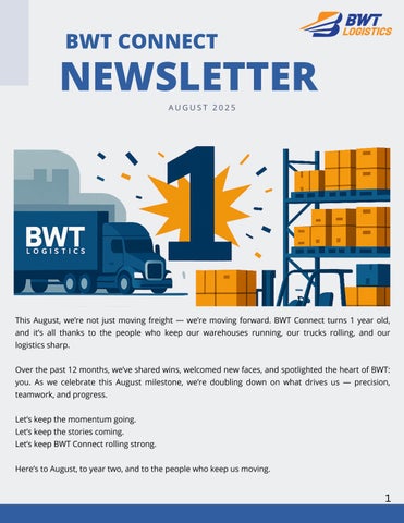 As we transition from the summer months, our focus turns to a strong finish for the third quarter and gearing up for the busy peak season ahead. This month is dedicated to reconnecting with our goals, reinforcing the foundations of our success, and celebrating the dedicated individuals who make BWT a leader in the logistics industry.