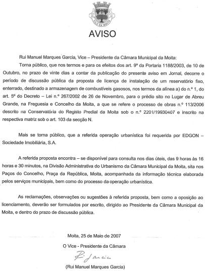 cimento por parte da edilidade. Na redacção de O RIO, só recebemos um comunicado municipal sobre este assunto, no dia 22 de Junho.