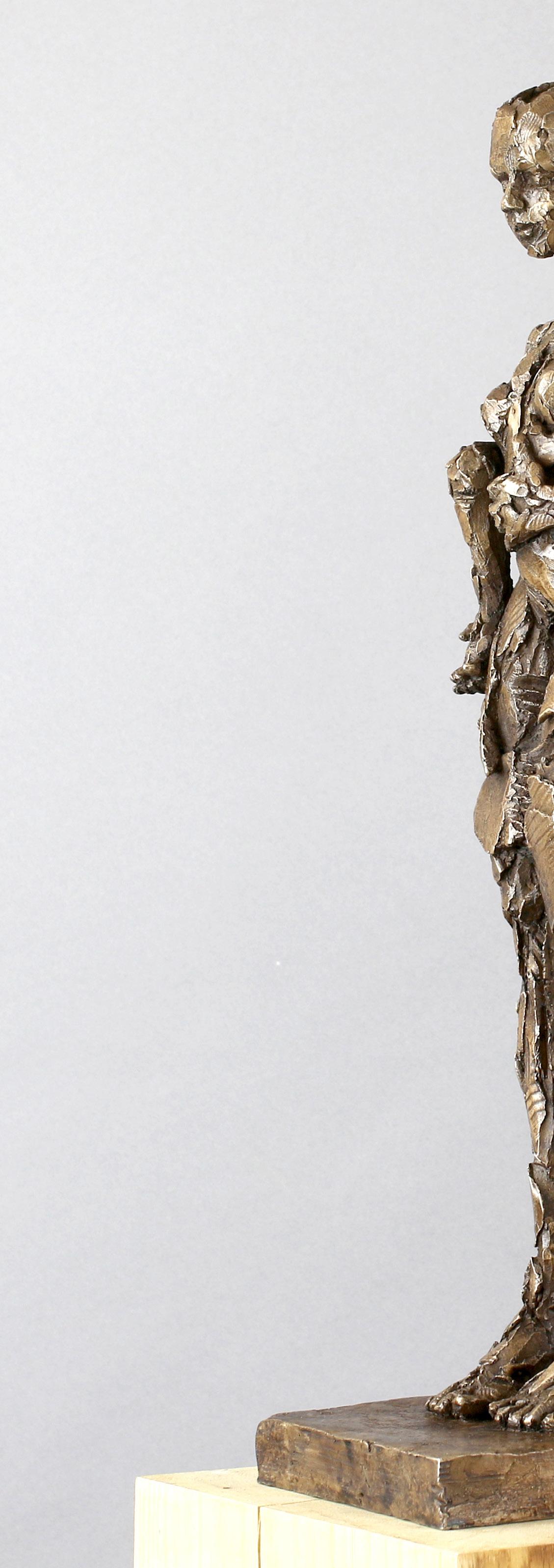 With their delicately balanced forms and rock like plinths Carol’s figures invite the viewer to mediate on the human condition, the step from adolescence to adult hood or the vulnerability of a mother and child. The sculptures are made in clay, which, like charcoal, is quick to make marks with. Once finished it is cast into bronze and resins, those fluid (sketch-like) marks of the making are then fixed forever.