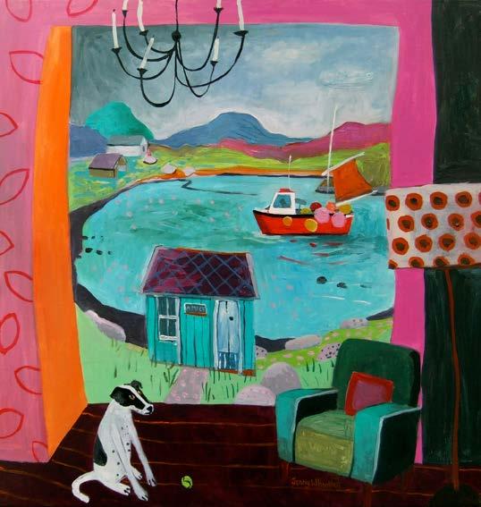 In Katarzyna’s own words: ‘I paint distant views of a landscape peppered with buildings. Water or valleys may divide the dwellings yet they are all connected by the echoing shapes and restful hues of my palette. A foreground detailed with wild flowers accentuates the perspective planes and graphic lines suggest paths and boundaries.”