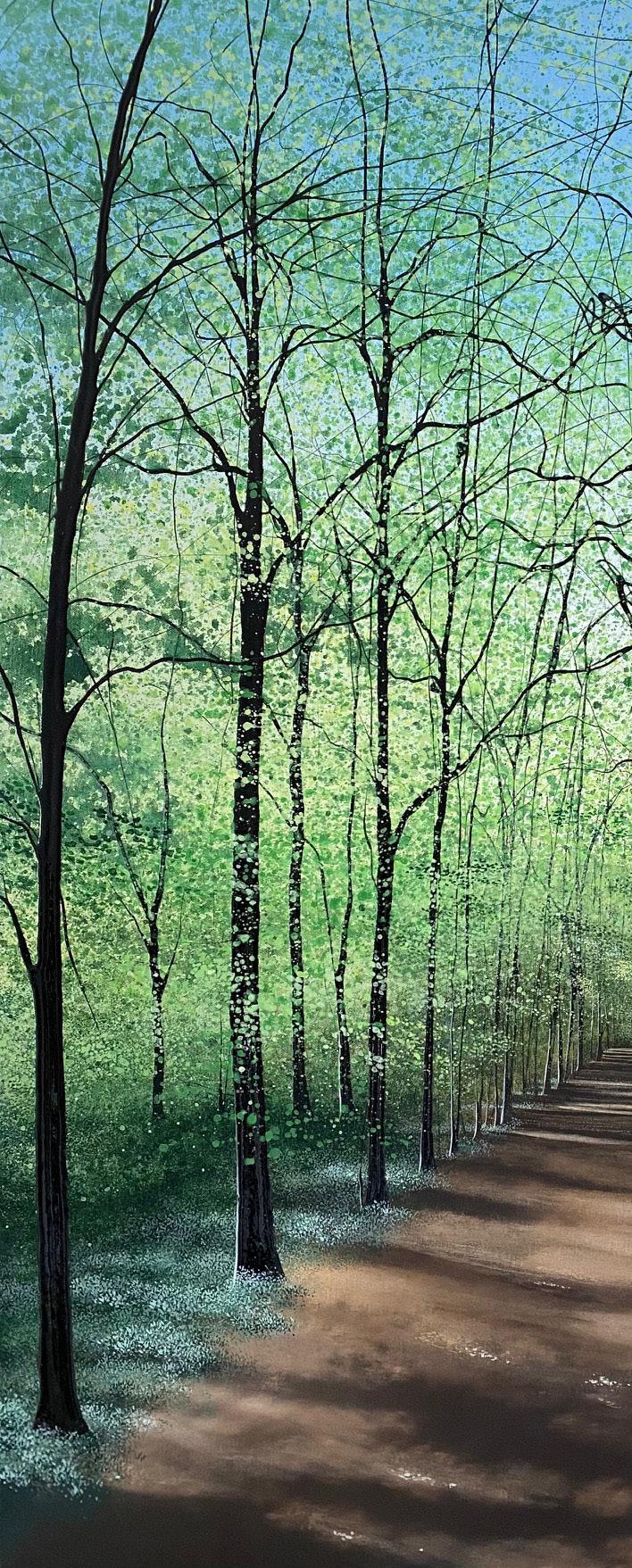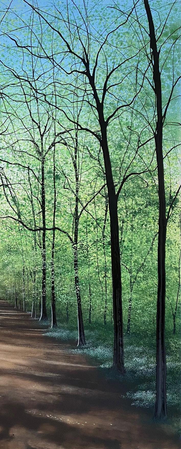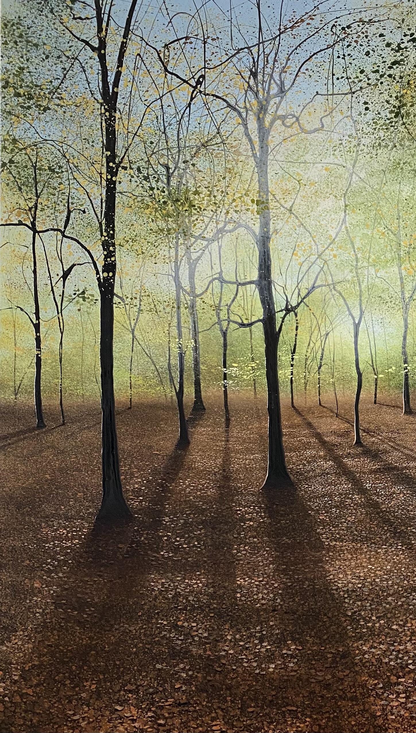 “I feel free and alive when I’m in the countryside on a long walk and there’s something magical about being in the woods. I love the changing light and shadows and hope to create beautiful paintings that create a sense of escapism.”