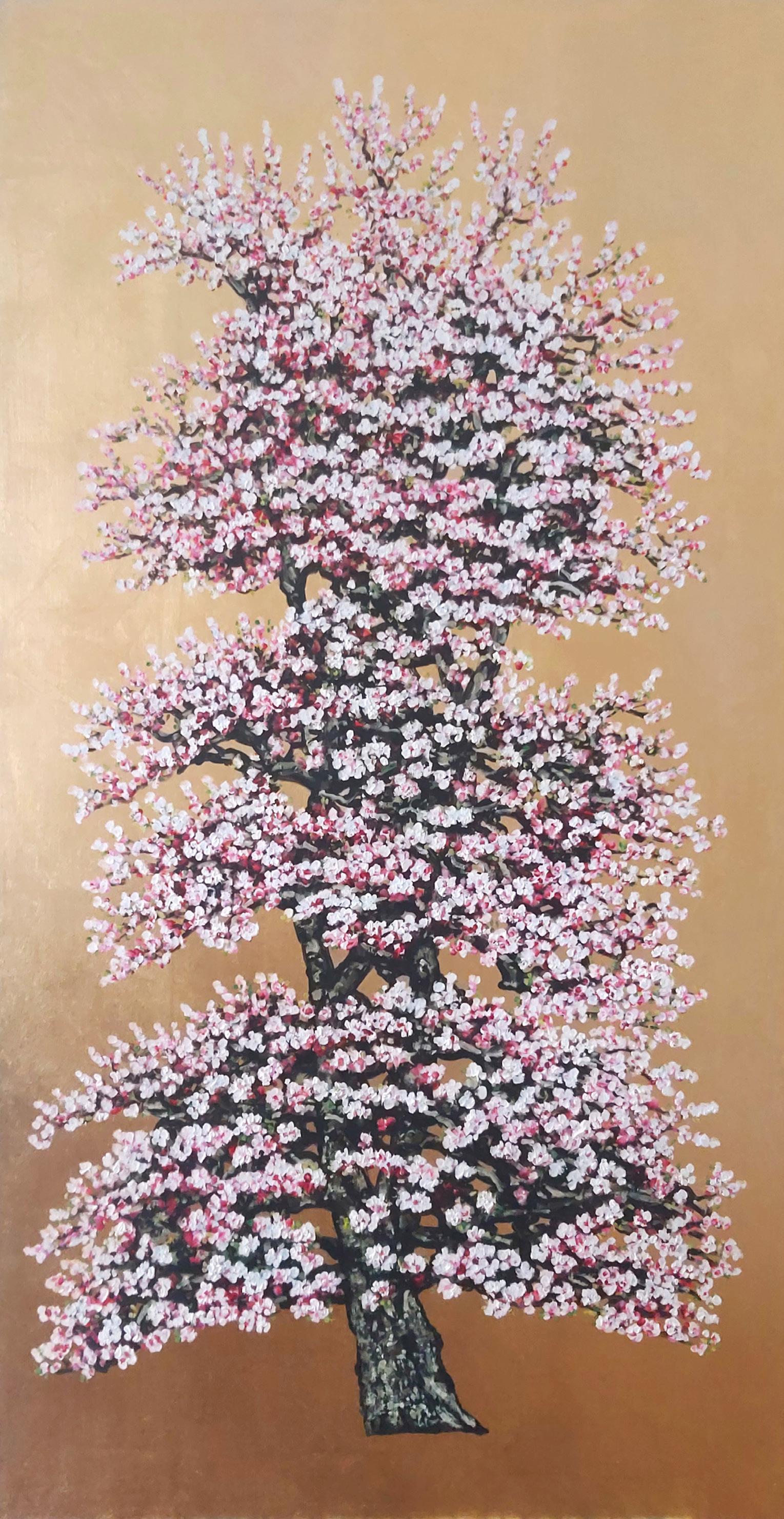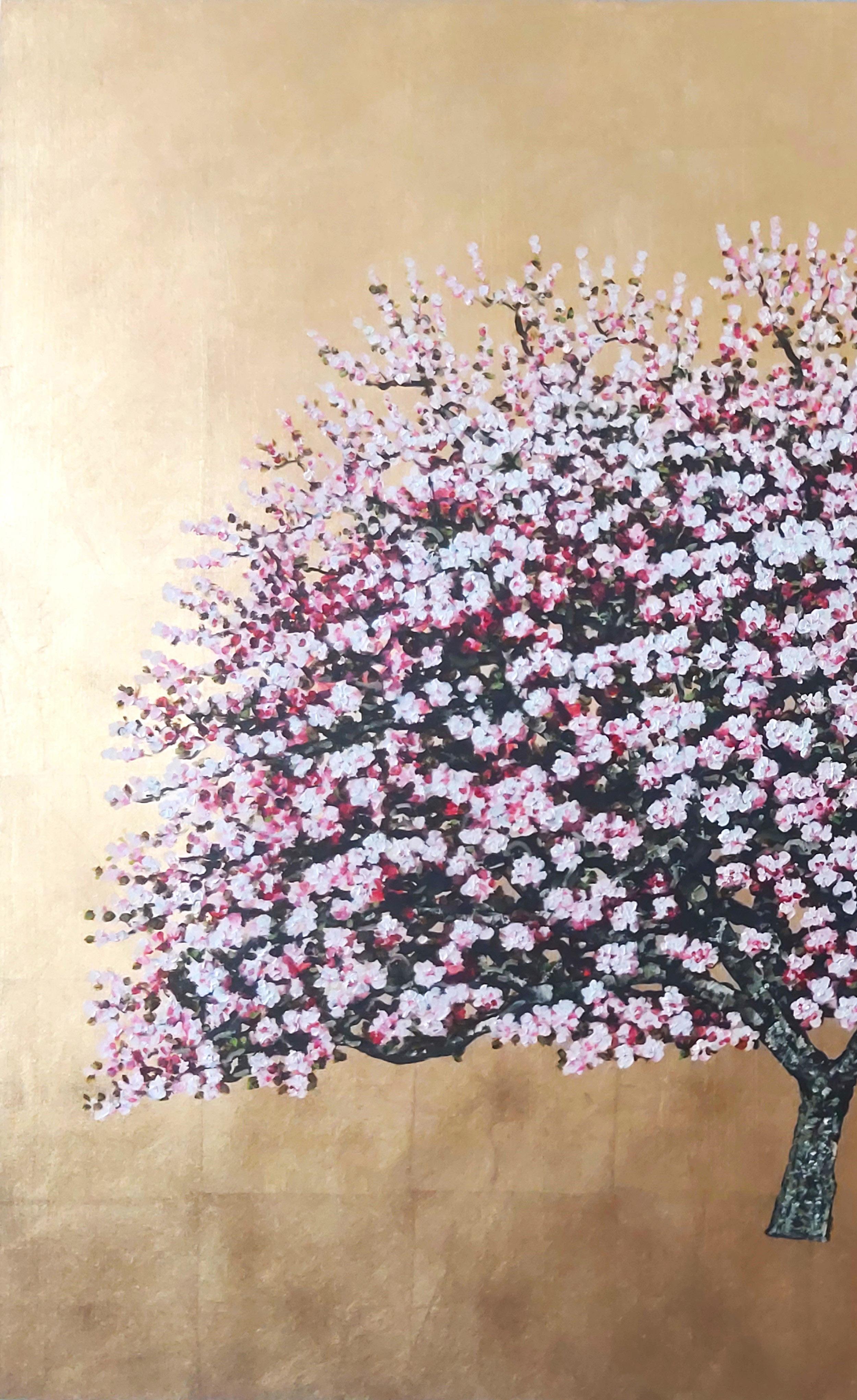 Rapunzel, Flowering Cherry Blossom Oil and Gold Leaf on Canvas