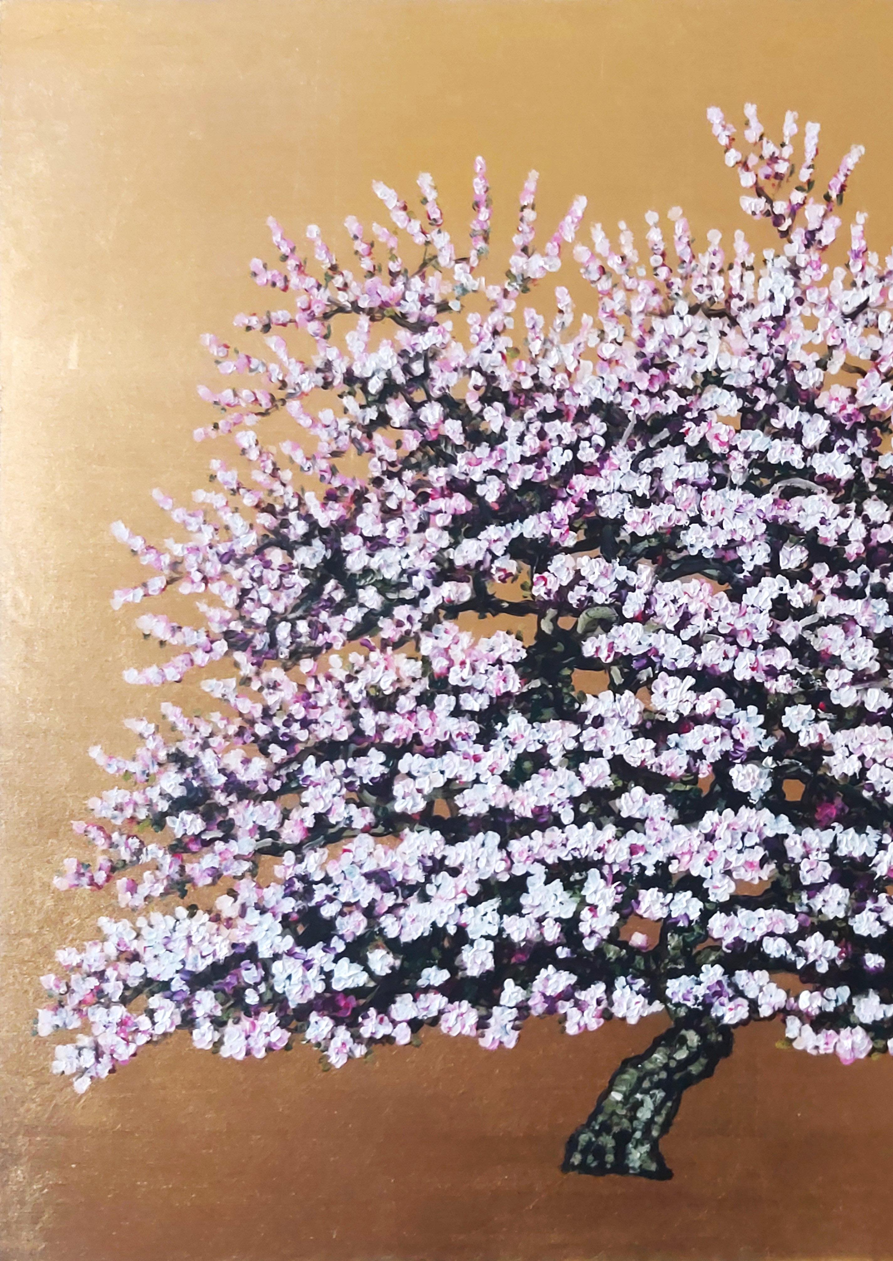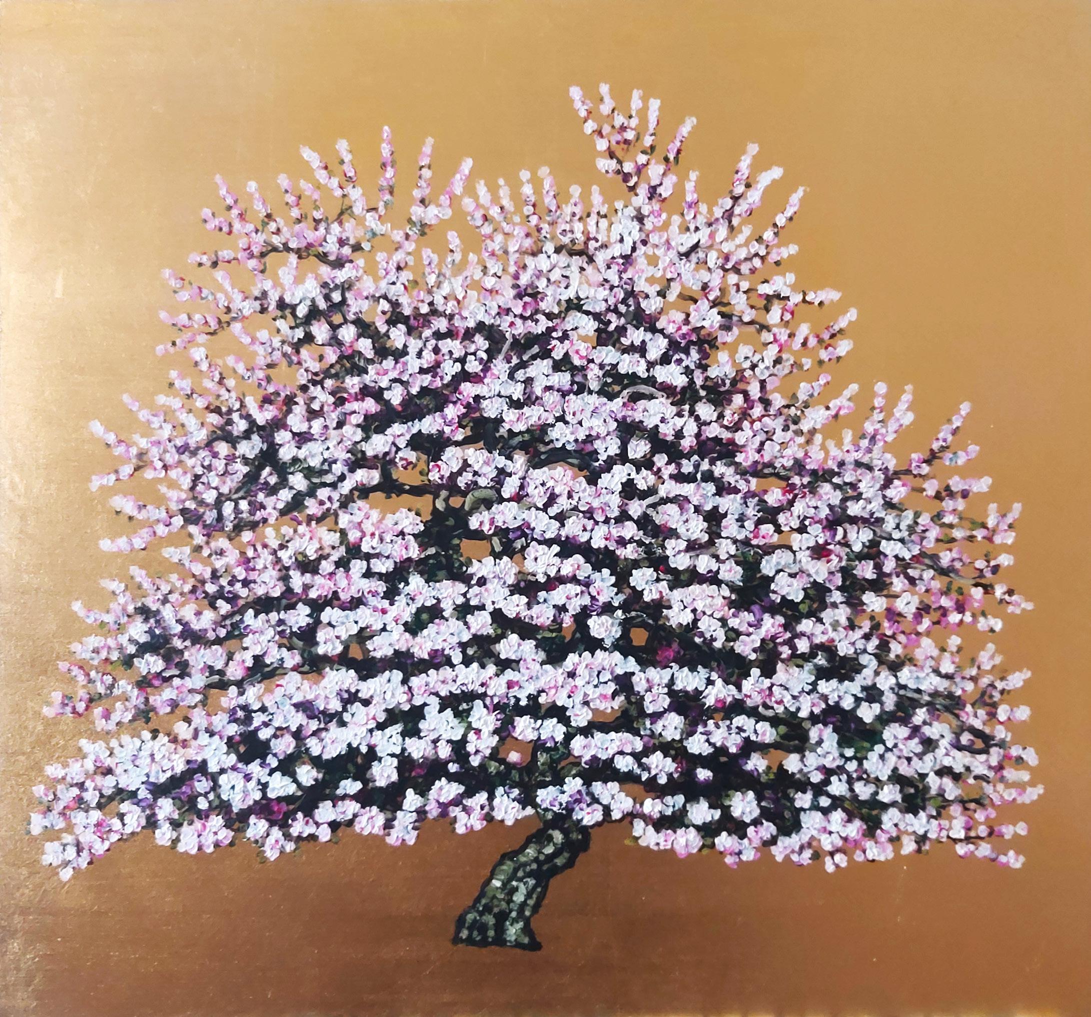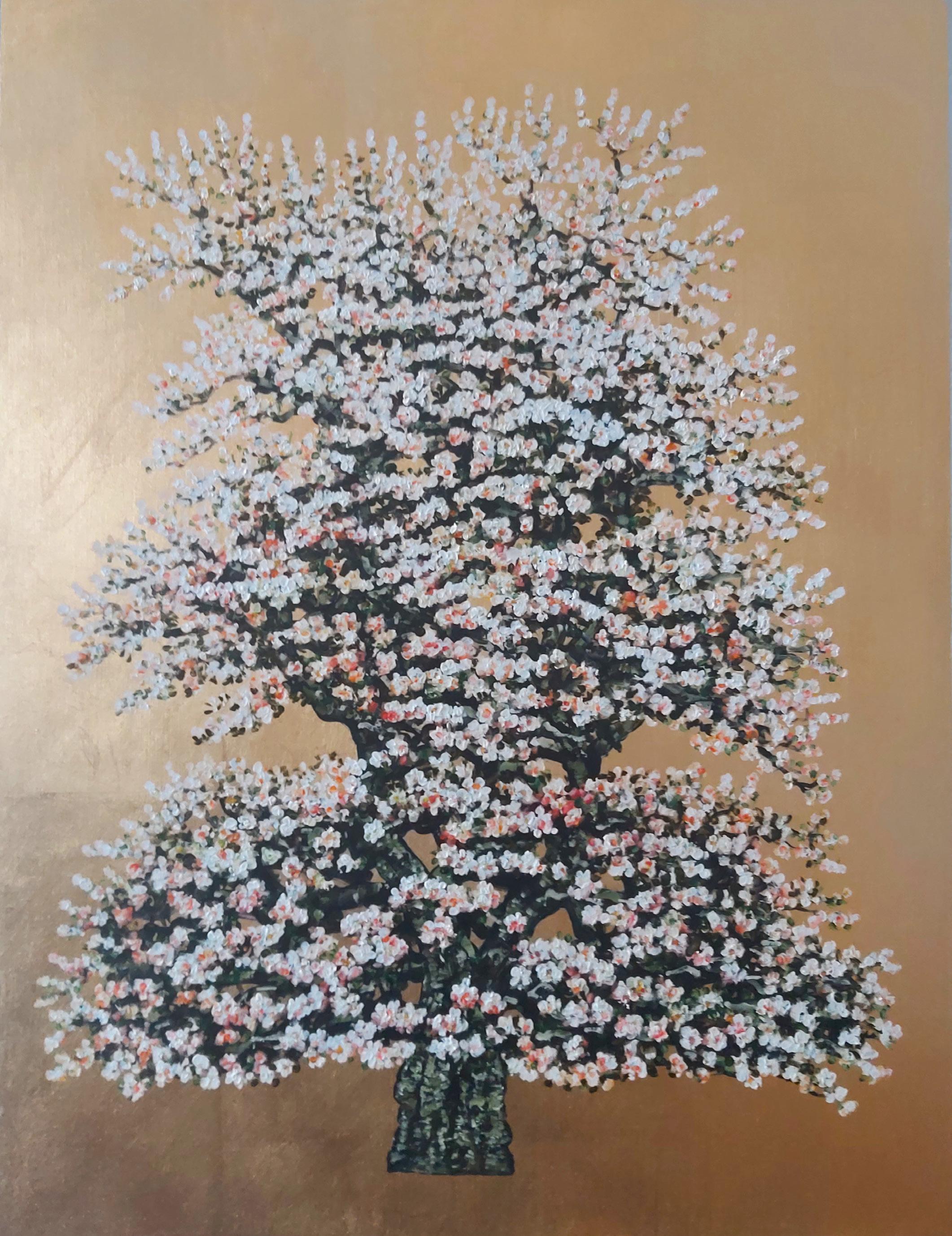 Lavinia, Flowering Apple Blossom Oil and Gold Leaf on Canvas