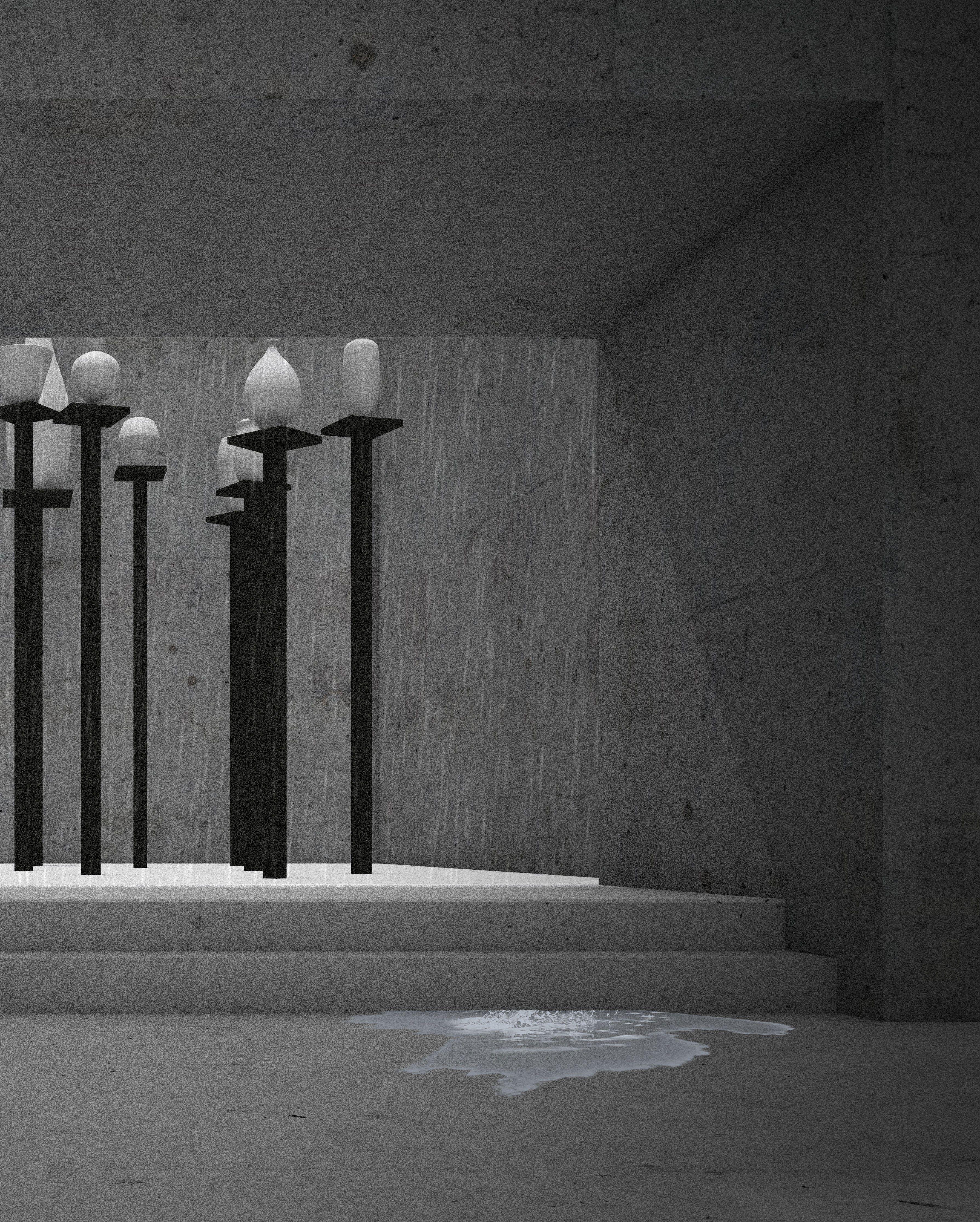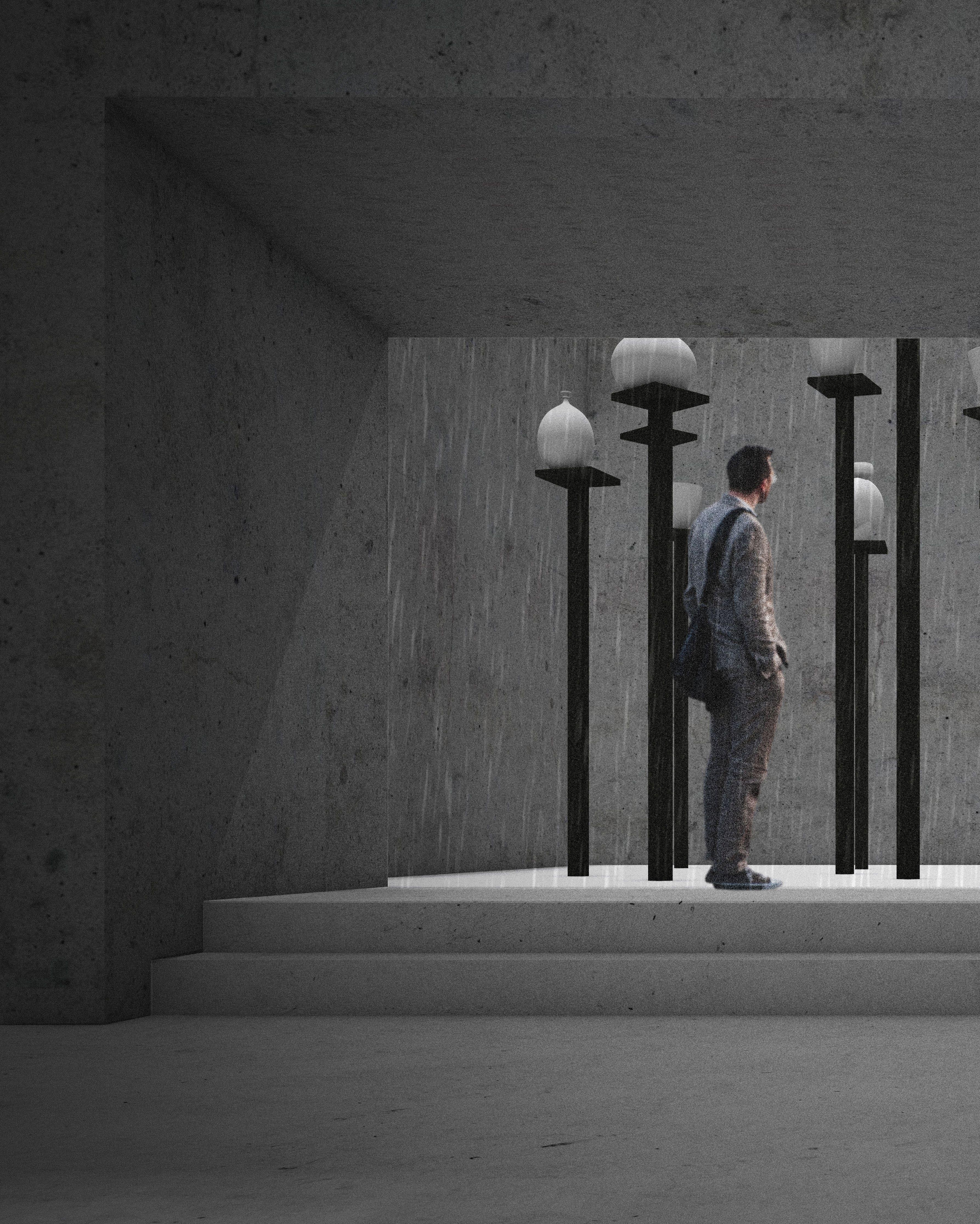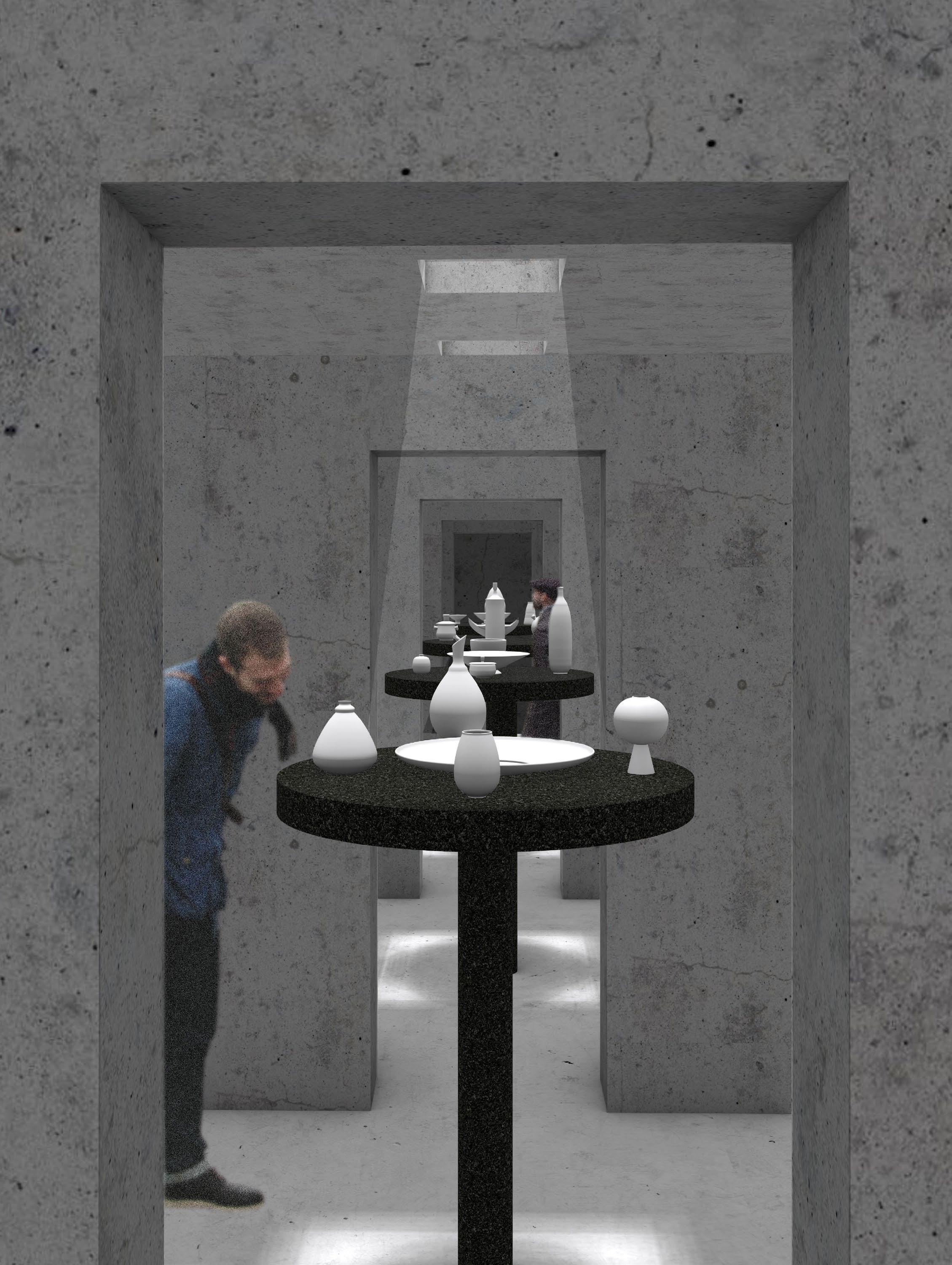 With the task of housing a collection of 100 unique ceramic pieces, the design of this pavilion seeks to disconnect the user from the outside environment and encourage them to explore the building in their own way.