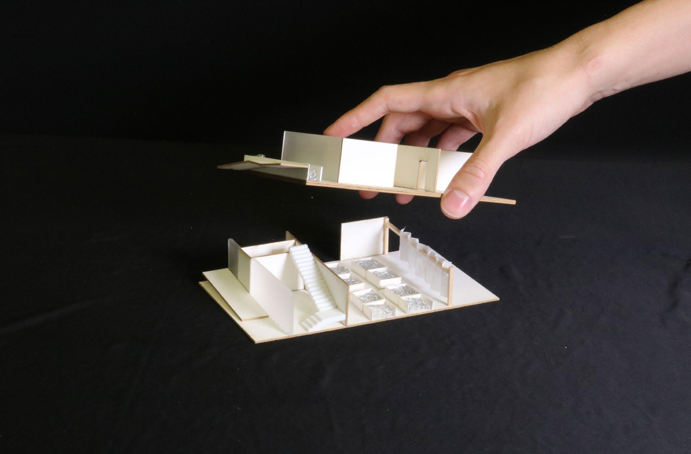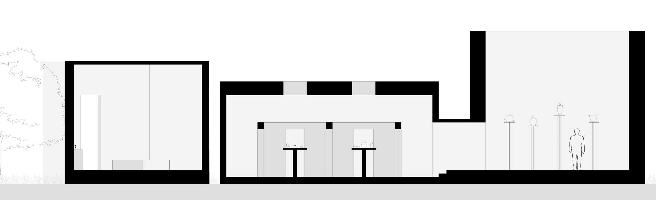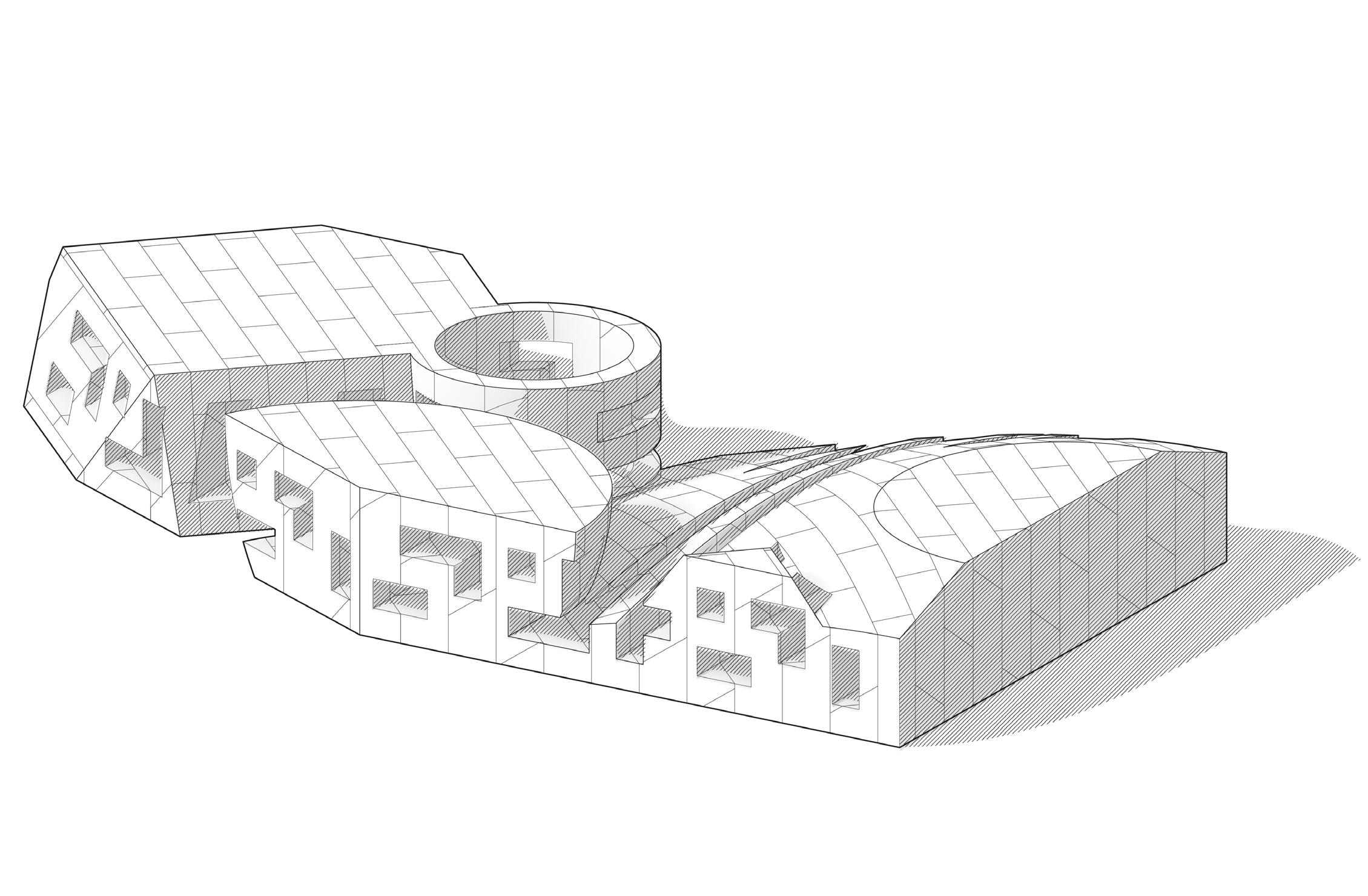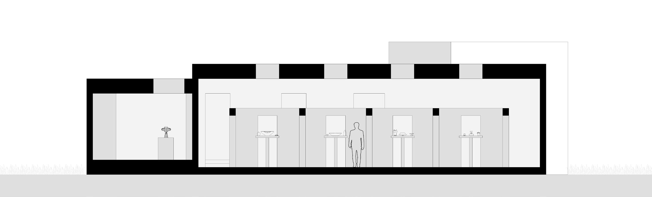 With the task of housing a collection of 100 unique ceramic pieces, the design of this pavilion seeks to disconnect the user from the outside environment and encourage them to explore the building in their own way.