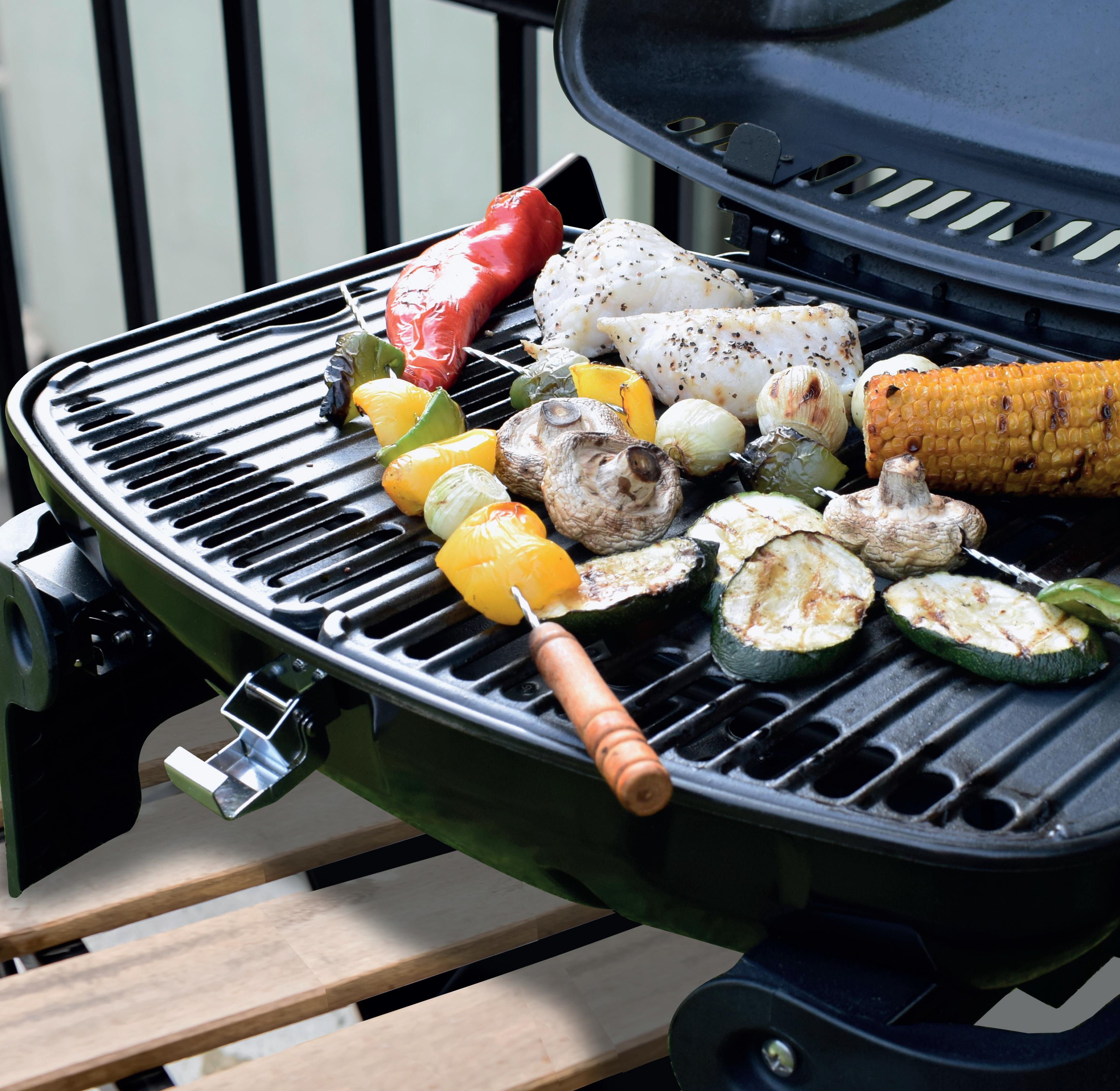 En elektrisk grill som er ideell for bruk på små balkonger.