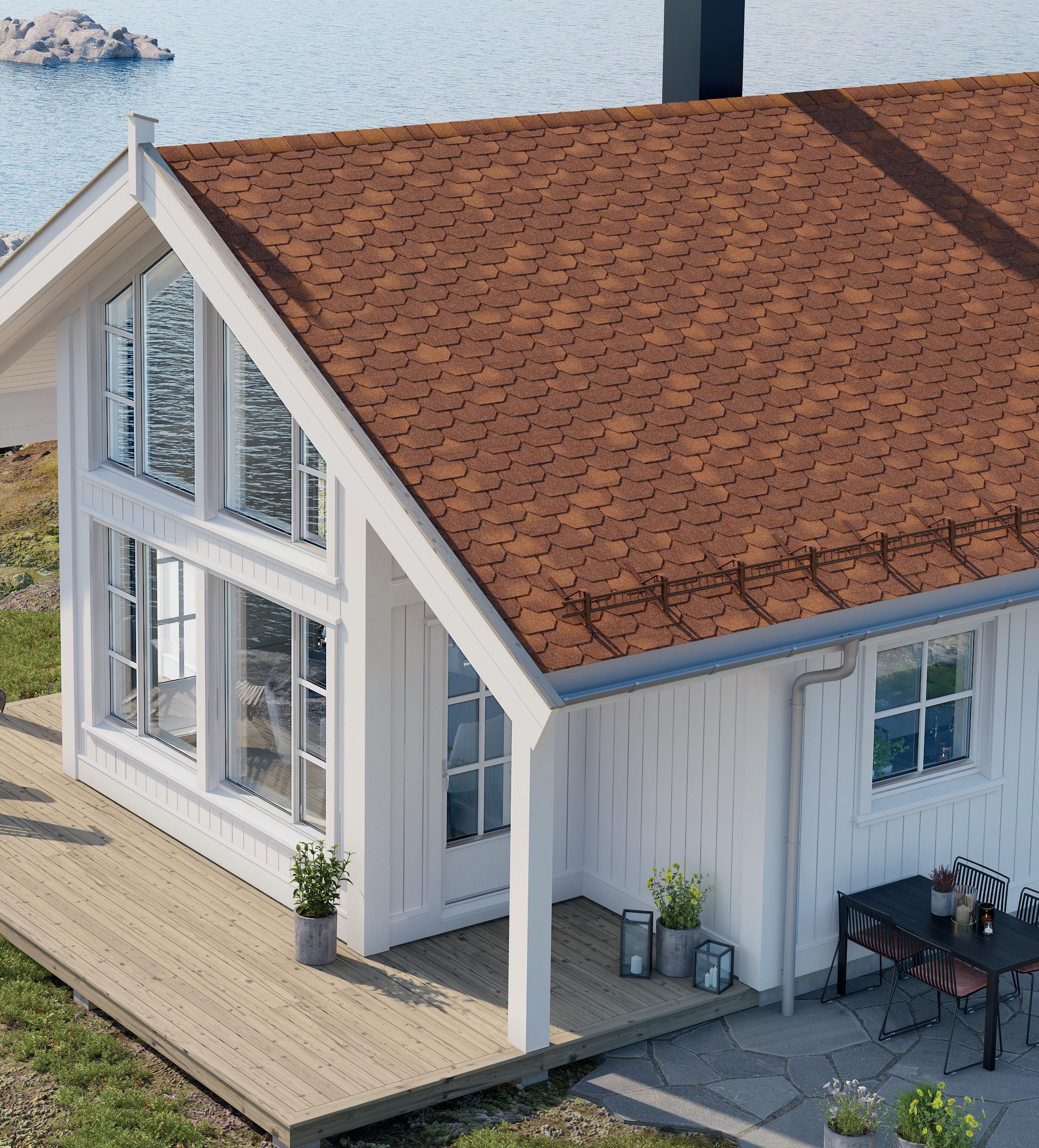 Takshingel til både hus og hytte. 20 års garanti og en forventet levetid på enda mer. Er tilpasset de ekstreme klima- og værmessige utfordringene norske tak utsettes for. Det er 15 varianter å velge mellom. Uansett hvilken du legger på ditt tak, gjør du et trygt valg. Du får et tak som virkelig er Best når det gjelder! Scann QR-kode og les mer.