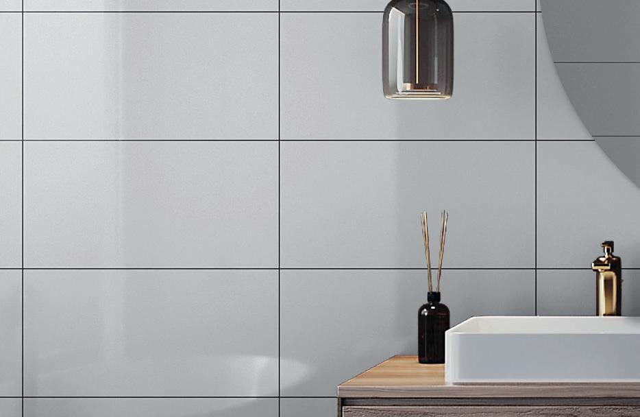 Classic White High Gloss med flisemønster 60x30cm. Grå fuge. Størrelse 11x620x2390mm.