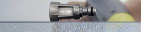 For skjult terrassebordmontering. Skruen monteres i siden på terrassebordet og skruen blir dermed skjult, uten synlige skruehoder, men med riktig monteringsdybde og samme avstand mellom hvert terrassebord. For terrassebordsbredde: 110-155 mm.