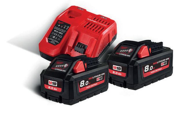 M 18 8,0 Ah REDLITHIUM High Output batterisett. 2 x M18 HB8 8,0 Ah REDLITHIUM batterier, 1 x M12 B4 4,0 Ah REDLITHIUM batteri og en M1218FC lader. # 55519902