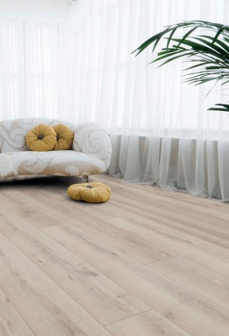 Mammut Mountain Oak Beige laminatgulv er holdbare, slitesterke og stilige. Her kan du søle og gå inn med sko uten å bekymre deg for riper eller hakk. Pris pr. m2 # 55355194