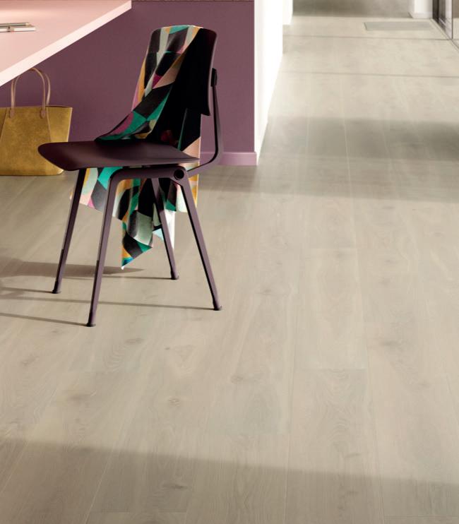 Mammut Mountain Oak Beige laminatgulv er holdbare, slitesterke og stilige. Her kan du søle og gå inn med sko uten å bekymre deg for riper eller hakk. Pris pr. m2 # 55355194