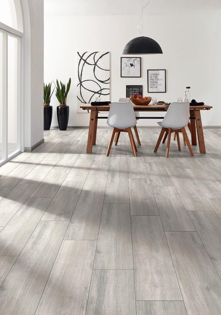 Mammut laminatgulv er holdbare, slitesterke og stilige. Her kan du leke, søle og gå inn med sko uten å bekymre deg for riper eller hakk. Det perfekte gulv for en småbarnsfamilie, hvor aktivitetsnivået er høyt og det er mye som skal utforskes. Room Max Et stilfullt høydepunkt i rommet. Karakteristisk lang og bred dimensjon gir gulvet interiøret et raffinert og solid uttrykk. Pr. m2 298,Slitesterke og stilige laminatgulv Pr. m2 298,Pr. m2 298,Pr. m2 289,Highland Oak Silver # 55063975 Capitol Oak Light # 56774041 Room Max Shadow Gray # 56573493 Mountain Oak Beige # 55355194 18 ELEGANTE OG TRENDY GULV