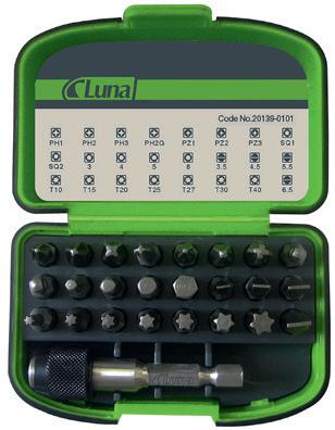 Bitssett 25 deler. Med hurtigchuckholder. Boks med belteklips. # 47931005