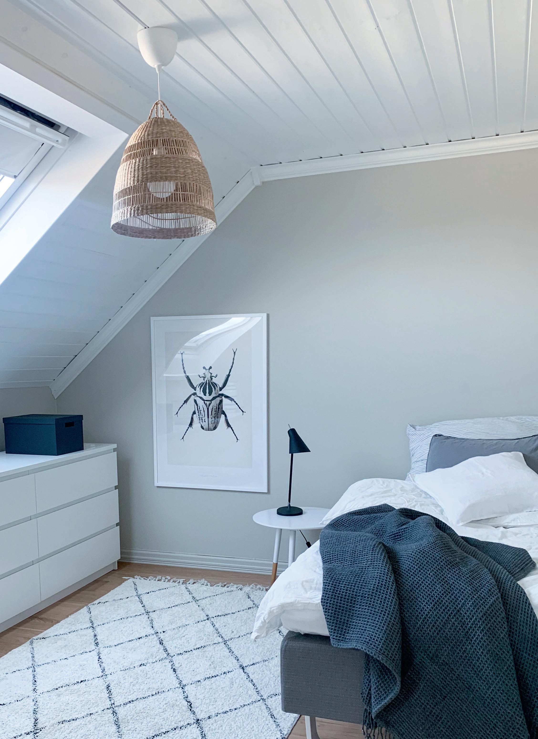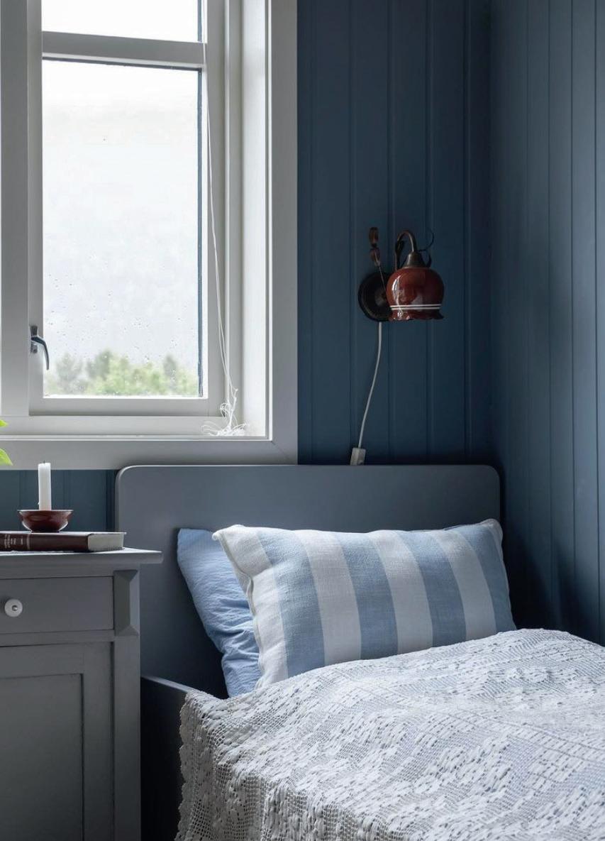 TIPS! For å forsterke den lune hulefølelsen på soverommet, kan du male vegger, tak og lister i samme farge.