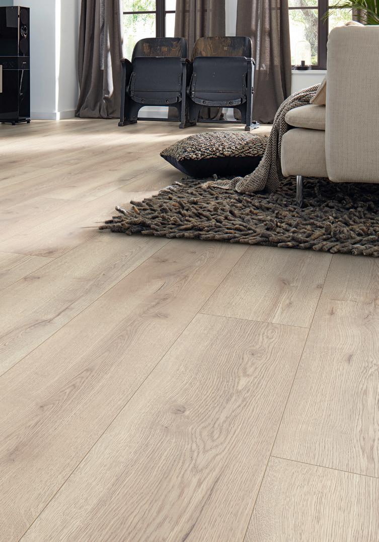 Mammut laminatgulv er holdbare, slitesterke og stilige. Her kan du leke, søle og gå inn med sko uten å bekymre deg for riper eller hakk. Det perfekte gulv for en småbarnsfamilie, hvor aktivitetsnivået er høyt og det er mye som skal utforskes. Room Max Et stilfullt høydepunkt i rommet. Karakteristisk lang og bred dimensjon gir gulvet interiøret et raffinert og solid uttrykk. Pr. m2 298,Slitesterke og stilige laminatgulv Pr. m2 298,Pr. m2 298,Pr. m2 289,Highland Oak Silver # 55063975 Capitol Oak Light # 56774041 Room Max Shadow Gray # 56573493 Mountain Oak Beige # 55355194 18 ELEGANTE OG TRENDY GULV