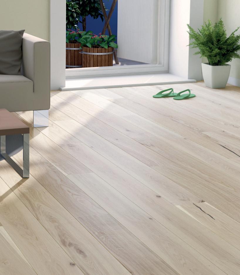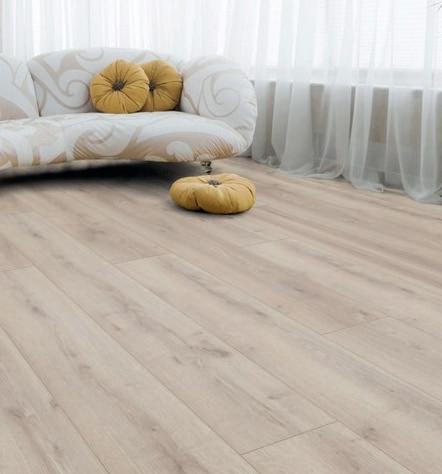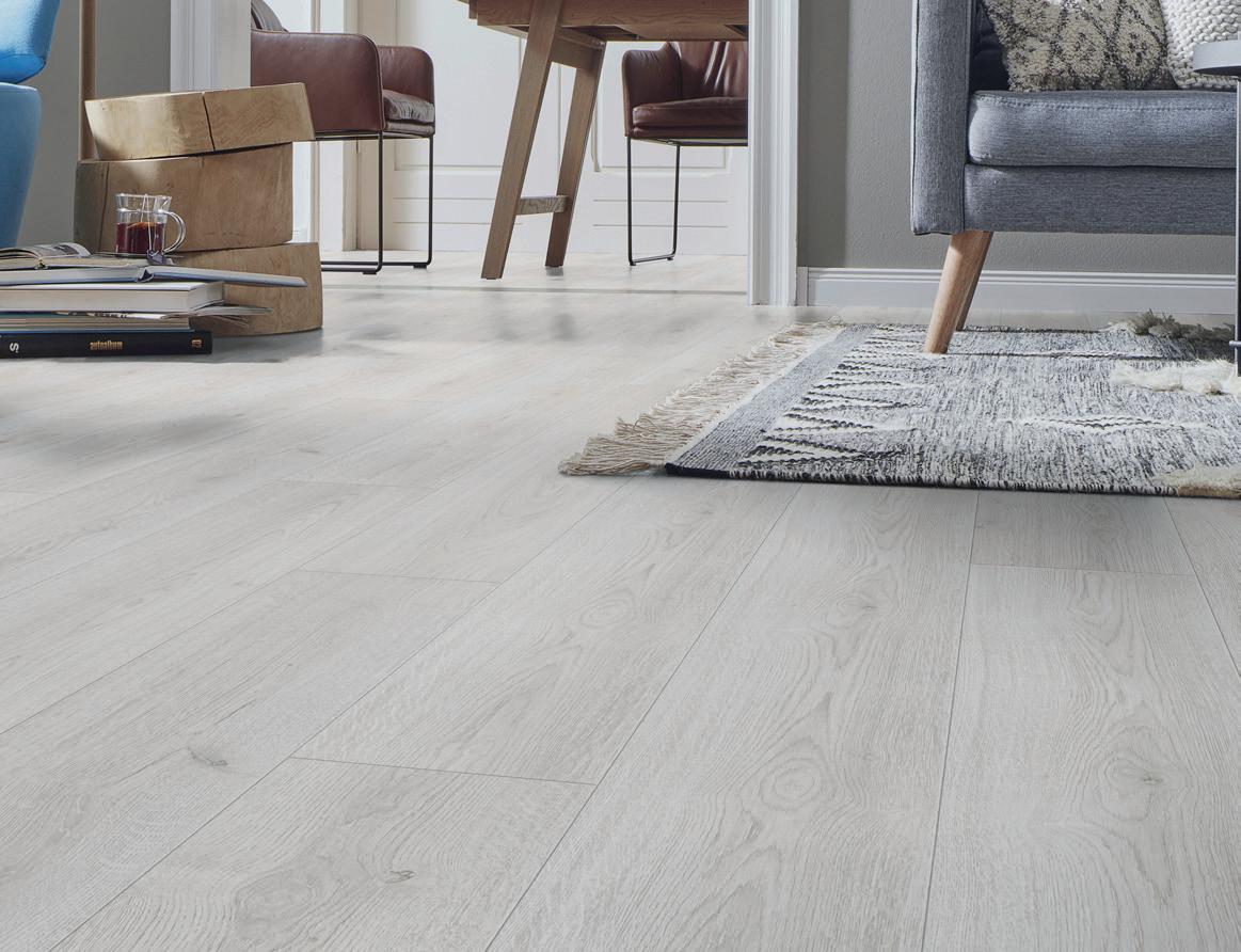 Superior Advanced Trend Oak White. Den matte overflaten og 4 siders V-fas gir gulvet et svært autentisk utseende.