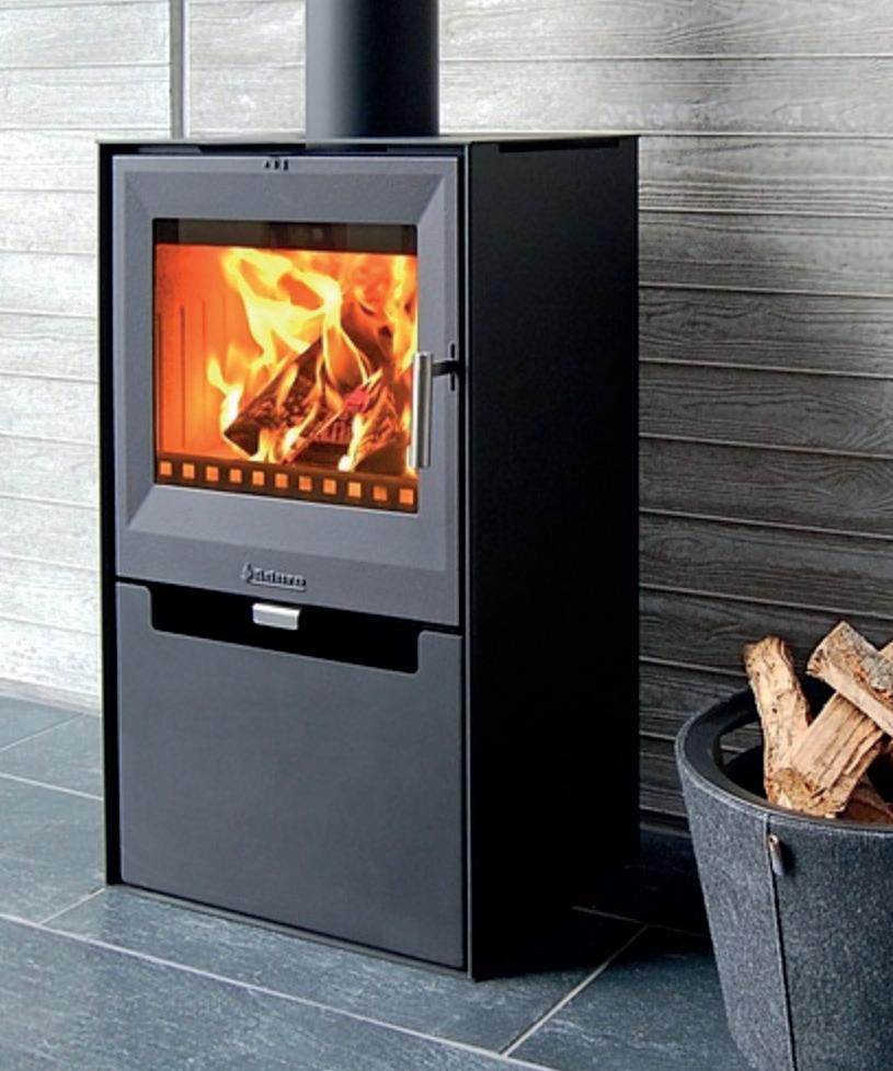 ADURO 17. En stilren og moderne ovn med store glasspartier som gir 180 graders innsyn til flammene.
