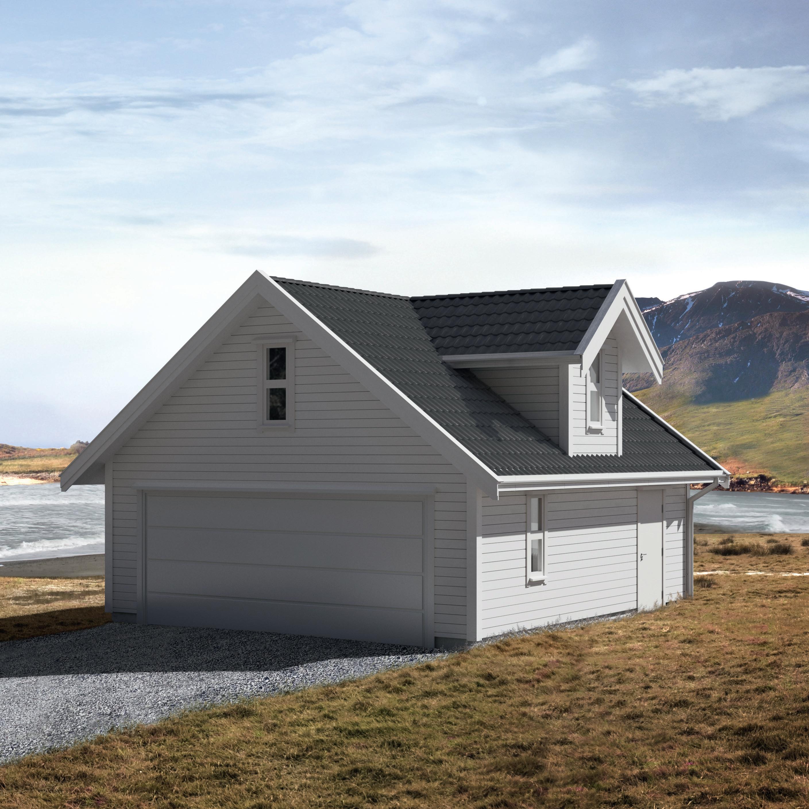 Garasjen passer til flere av våre hus. Størrelse, materialbruk og fargevalg kan enkelt tilpasses dine ønsker.