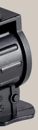 Kombinerer platejern og støpejern i et enkelt, kubisk design.