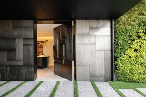 The dramatic entrance begins with a top-lit atrium leading up from a 12-car underground garage, culminating in a breathtaking view of downtown LA. In line with SAOTA’s expertise in blending indoor and outdoor spaces, the home’s design integrates multiple living rooms connected to vast terraces and an infinity pool, surrounded by lush landscaping. The property’s thoughtful use of space and privacy, enhanced by climbing ficus trees, evokes the spirit of mid-century modernist architecture while maximizing LA’s climate for modern living.