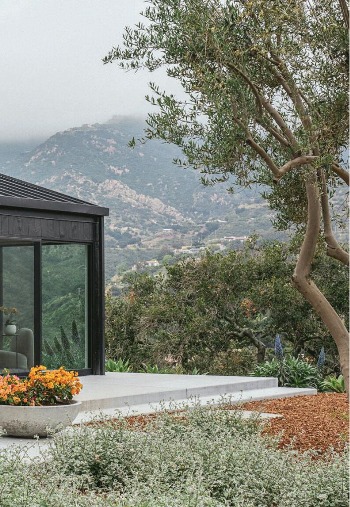 The remodel revitalizes the existing footprint, reorienting the interior around communal spaces with a material palette that reflects the natural surroundings. The Vista House’s exterior harmonizes with the Santa Ynez Mountains, featuring a sleek, functional design with charred wood cladding. Inside, expansive northern glass facades frame mountain vistas, creating a tranquil, grand atmosphere. The design prioritizes simplicity and functionality, blending with the environment and offering a serene retreat while showcasing the surroundings.