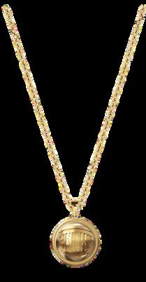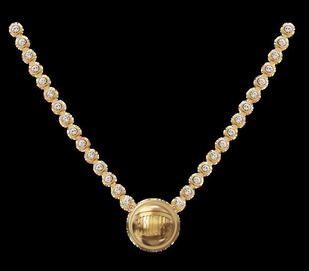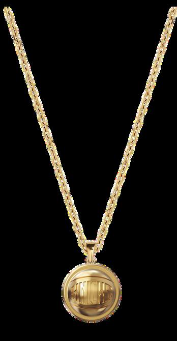 ensional bubble-style logo design chain with 2" extender ter clasp closure for secure wear