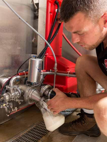 „Við höfum notað Lely Calm í um það bil ei og hálft ár og sjáum að kálfunum líkar vel að faraí kálfafóstruna. Þeir drekka meiri mjólk núna en þegar við gáfum þeim fi mm lítra af mjólk tvisvar á dag. Kálfarnir hafa því dafnað mun betur en áður á mjólkurgjafartímanum. Auk þess er hægt að koma í veg fyrir afturför við fráfærur með því að draga hægt og rólega úr mjólkurmagninu.“