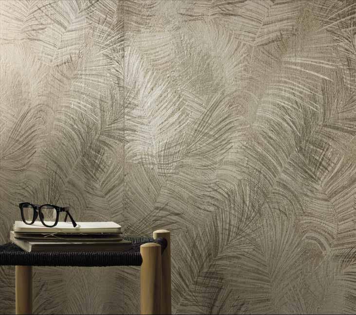 Da der Hintergrund jedes Farbtons farblich sehr kompakt ist, erweist sich Archistone als ein Steineffekt mit sehr klaren Farben // Es ist die grafische Textur, die zwischen Maserungen und mineralischen Konkretionen den Oberflächen ihre maßvolle farbliche Veränderlichkeit verleiht //