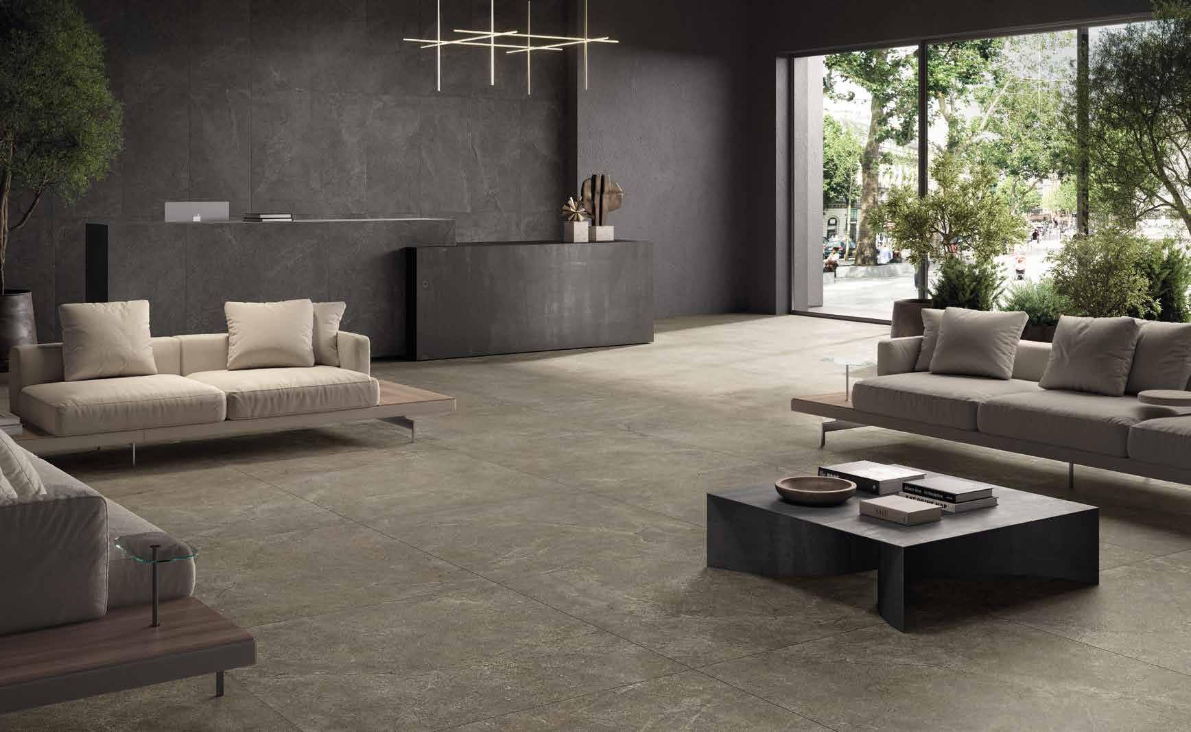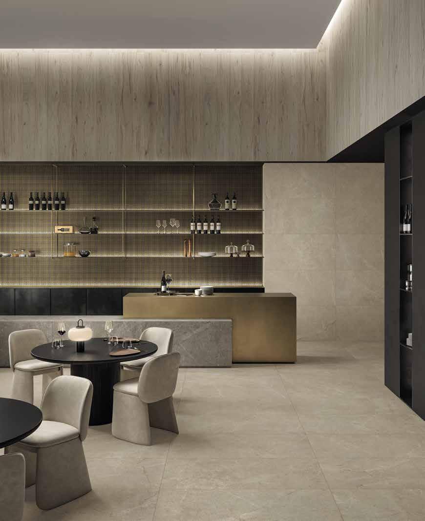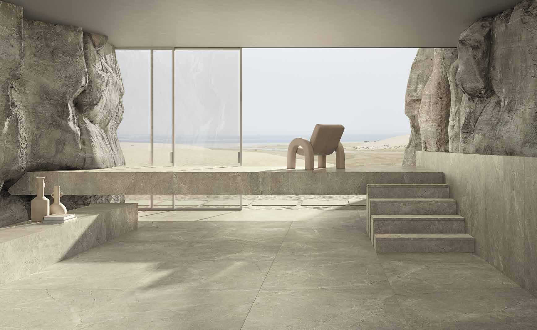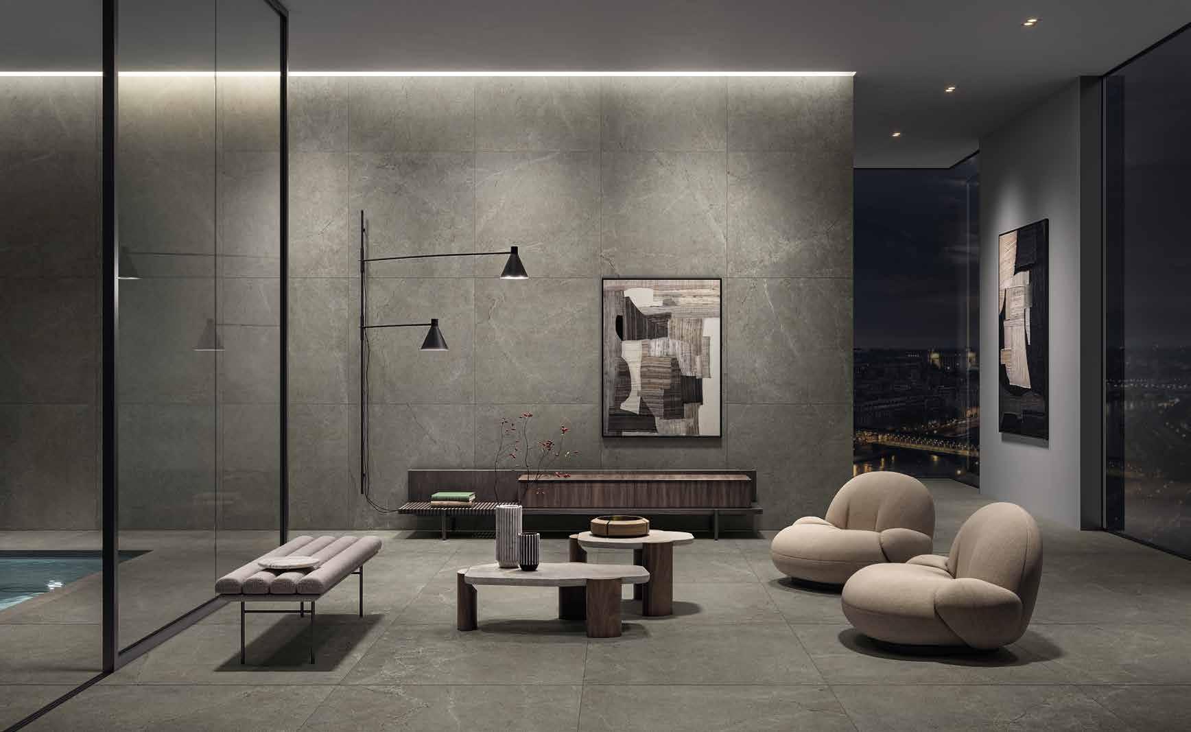 A balanced and yet textured stone effect surface becomes a valuable tool for interior design // With its intrinsic naturalness, it fits perfectly into the most varied architectures and life styles thanks to its timeless modernity //