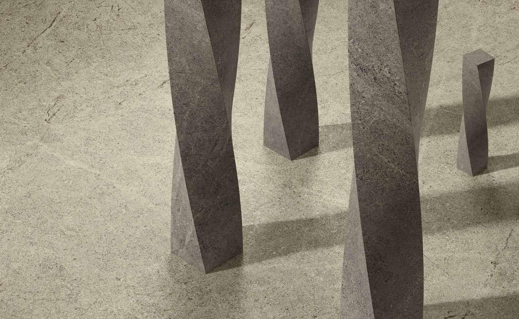 Grazie alle numerose grafiche messe a punto, nascono pose che ricreano la naturale variabilità della vera pietra // Un forte senso di autenticità per un set di strumenti di design dal look armonioso e materico //