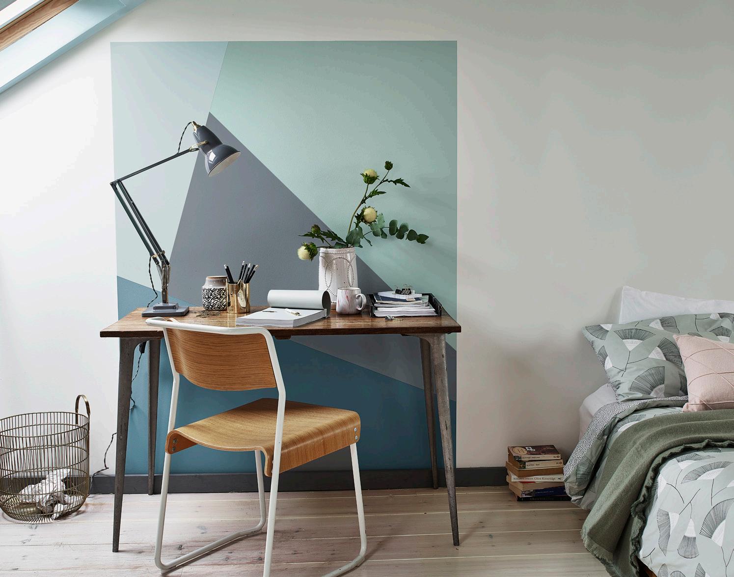 Create a spacious feeling using light airy colours. Or ground yourself with the darker part of the colour scale.