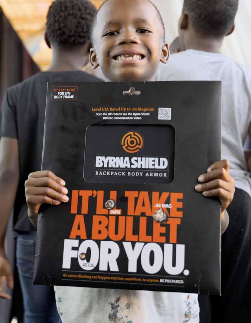While it is not practical for every American to walk around with a backpack that converts into full body armor, it does not mean that the general population is not at risk. Every year approximately 20,000 Americans are killed by firearms (not including suicide). Tens of thousands more are horribly injured. To address this risk, Byrna has introduced the Byrna Shield, a lightweight, flexible shield that fits easily into any backpack, bookbag, or briefcase. With a IIIA rating, the Shield is capable of stopping most handgun rounds, up to and including a .44 Magnum. While the Byrna Shield cannot stop all threats, when faced with an assailant with a gun, it is better to have a bulletproof shield than not have a bulletproof shield.