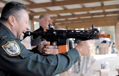 With batons and stun guns, you are in hand-to-hand combat before they are effective. Even with pepper spray or an electroshock device, you are range-limited to 10 to 15 feet. By then, the situation has escalated out of control. The Byrna SD and LE both have a 60’ effective range.