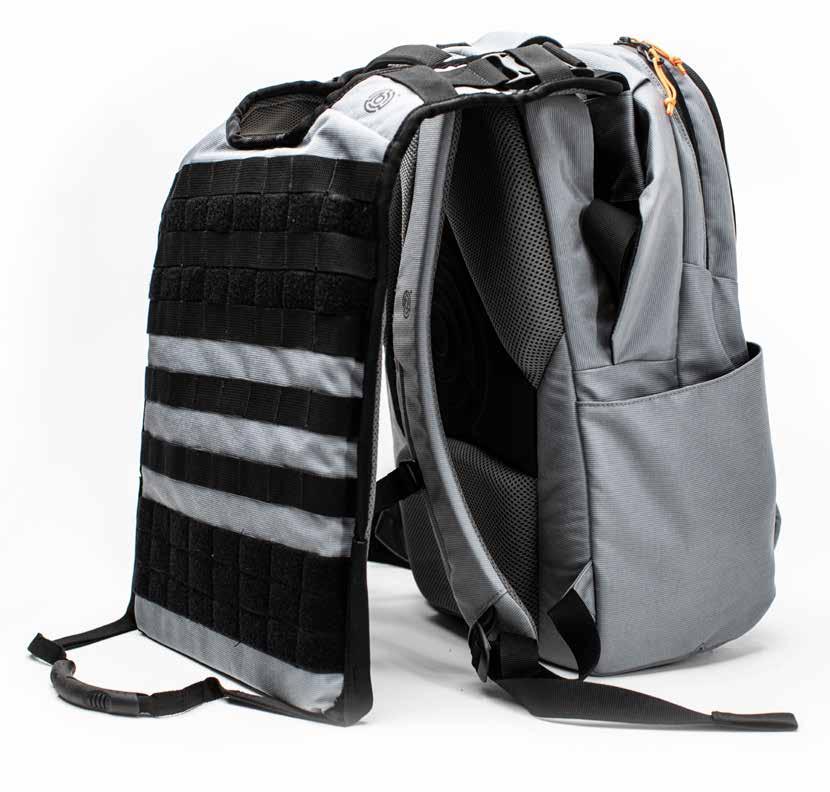 The Ballistipac can accept all manner of body armor and is offered by Byrna in three configurations - IIIA (capable of stopping all handgun rounds), III+ (capable of stopping bullets fired from an AR-15) and SRO (III+ in the front and IIIA in the back). While concealing your body armor, the Byrna Ballistipac also functions as a traditional backpack with storage for laptops, accessories, and other mission-essential items.