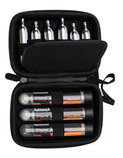 • A must-have accessory, this semi-hard C02 + ammo carry case constructed with a sturdy industrial-strength zipper allows you to conveniently transport, store and protect six (6) C02 canisters and three (3) tubes of projectiles everywhere you go.