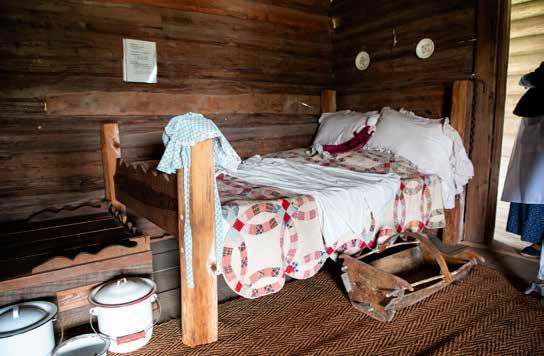 The square surrounding Heritage Village presents a bygone era with an 1840s dogtrot home, an 1884 log cabin, a one-room schoolhouse, a moveable plantation kitchen, a corn crib, and a blacksmith shop among other sites. Most are authentic, pluckedfrom-the-1800s structures that were saved from demolition and moved to the Village, and a few are carefully recreated replicas of historic buildings.