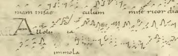 1 . An Easter Alleluia performance by Schola Antiqua, directed by John Blackley, sung from the Messine notation in the Laon 239 manuscript from about 930 AD . Certain neumes (the symbols above the words that indicated pitch) were interpreted as pitch bends, inflections that seem to float upward just for a moment . When I first heard this interpretation in Thomas Mathiesen’s Medieval Music class at Indiana University in the early 2000s, I was electrified by these pitch bends and the affect they conveyed: a gravity-defying sweep of praise and forward energy . Similar pitch bends permeate At Full Strength .