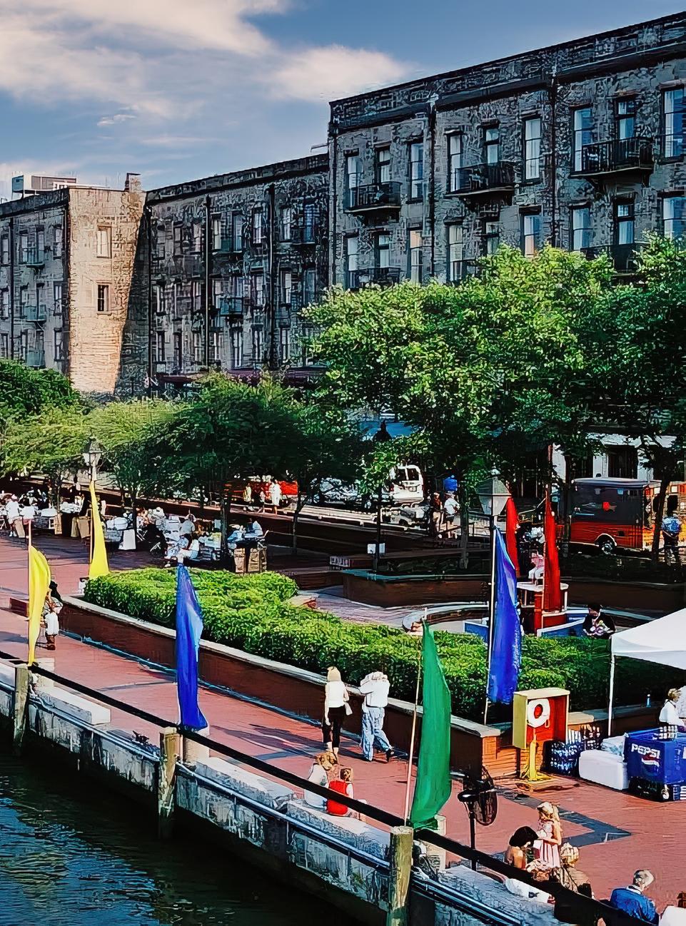 buildings. Savannah’s downtown area includes the Savannah Historic District, its 22 park-like squares, and the Savannah Victorian Historic District.
