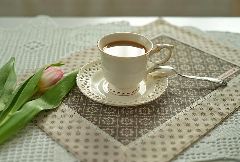 머그잔의 손잡이를 잡고 새끼손가락으로 머그잔의 밑바닥을 받친다.