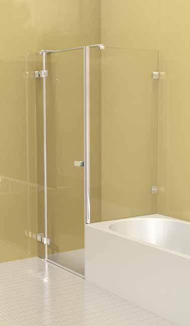 Wannenmaß 90 cm, Einbaumaß 88 - 90 cm, rechts, Metall Hochglanz, Echtglas hell Artclear Glas