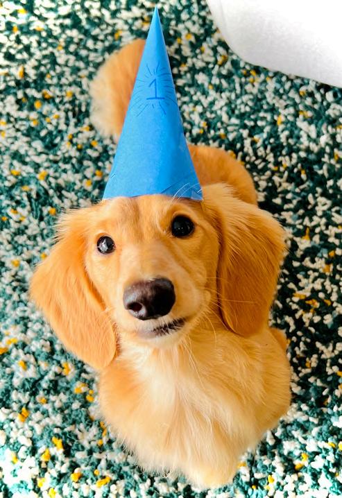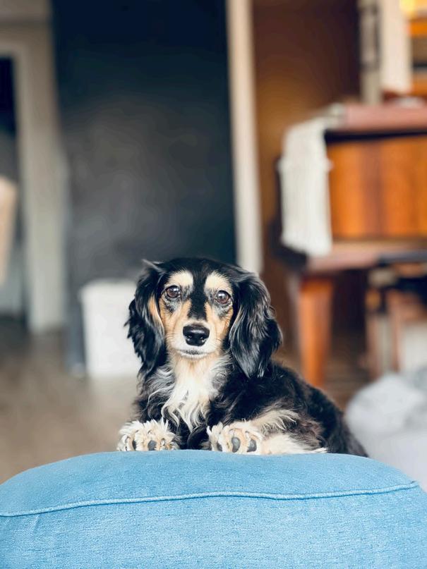 MY FAMILY HAS TWO LONG-HAIRED DACHSHUNDS, OR ‘SAUSAGE DOGS’ AS THEY ARE POPULARLY KNOWN AS. ROSIE IS OUR BLACK AND TAN 3-YEAR-OLD GIRL AND ROMEO IS A GOLDEN 1-YEAROLD BOY. I HAVE ALWAYS LOVED THE WAY SAUSAGES LOOK AND IT’S VERY HARD TO RESIST THEIR CUTE FACES EVEN WHEN THEY DO NAUGHTY THINGS! THE BREED ORIGINATES FROM GERMANY AND THEY WERE BRED AS HUNTING DOGS THAT COULD BURROW TO CATCH SMALL PREY I SUPPOSE THAT’S WHY BOTH ROSIE AND ROMEO ENJOY BEING CUDDLED AND LOVE TO SNUGGLE IN TIGHT SPACES!