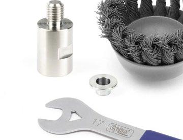 HINWEIS: Bei Aufnahme von Scheibenbürsten und Sägeblättern wird zusätzlich eine Spannscheibe benötigt!